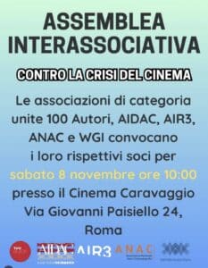 Le associazioni di categoria unite 100 Autori, AIDAC, AIR3, ANAC e WGI hanno convocato per
