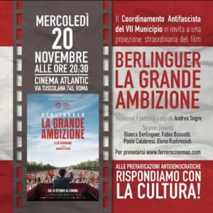 Questa sera, 20 Novembre, presso il cinema Atlantic di via Tuscolana a Roma si terrà la proiezione speciale del film